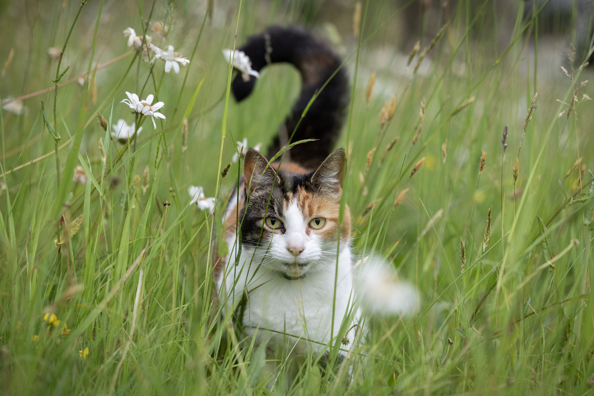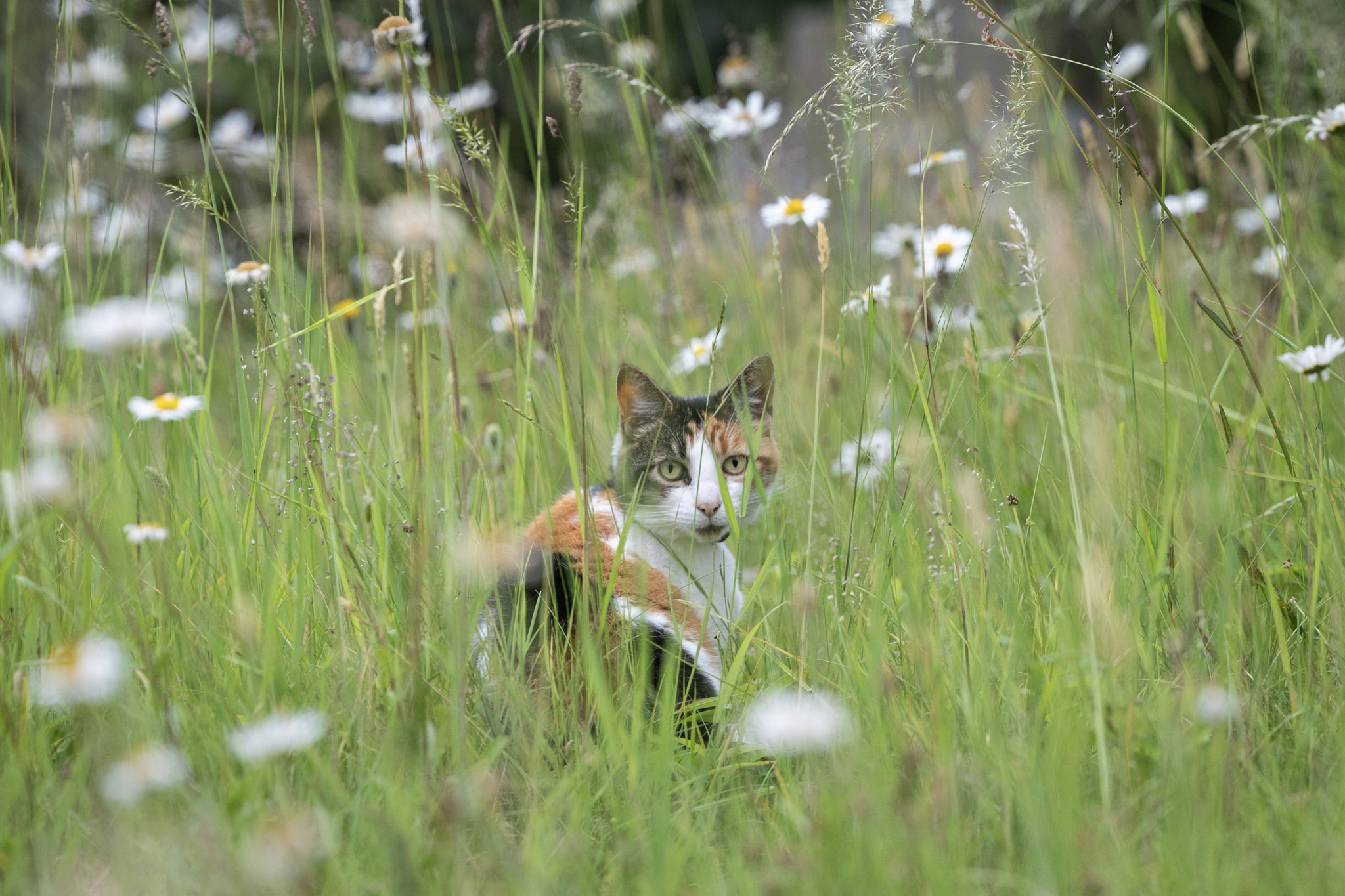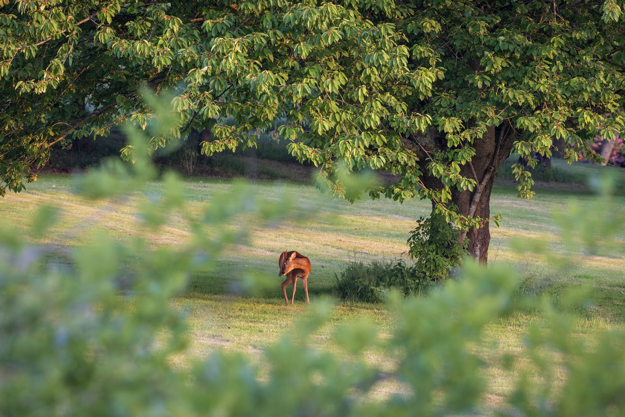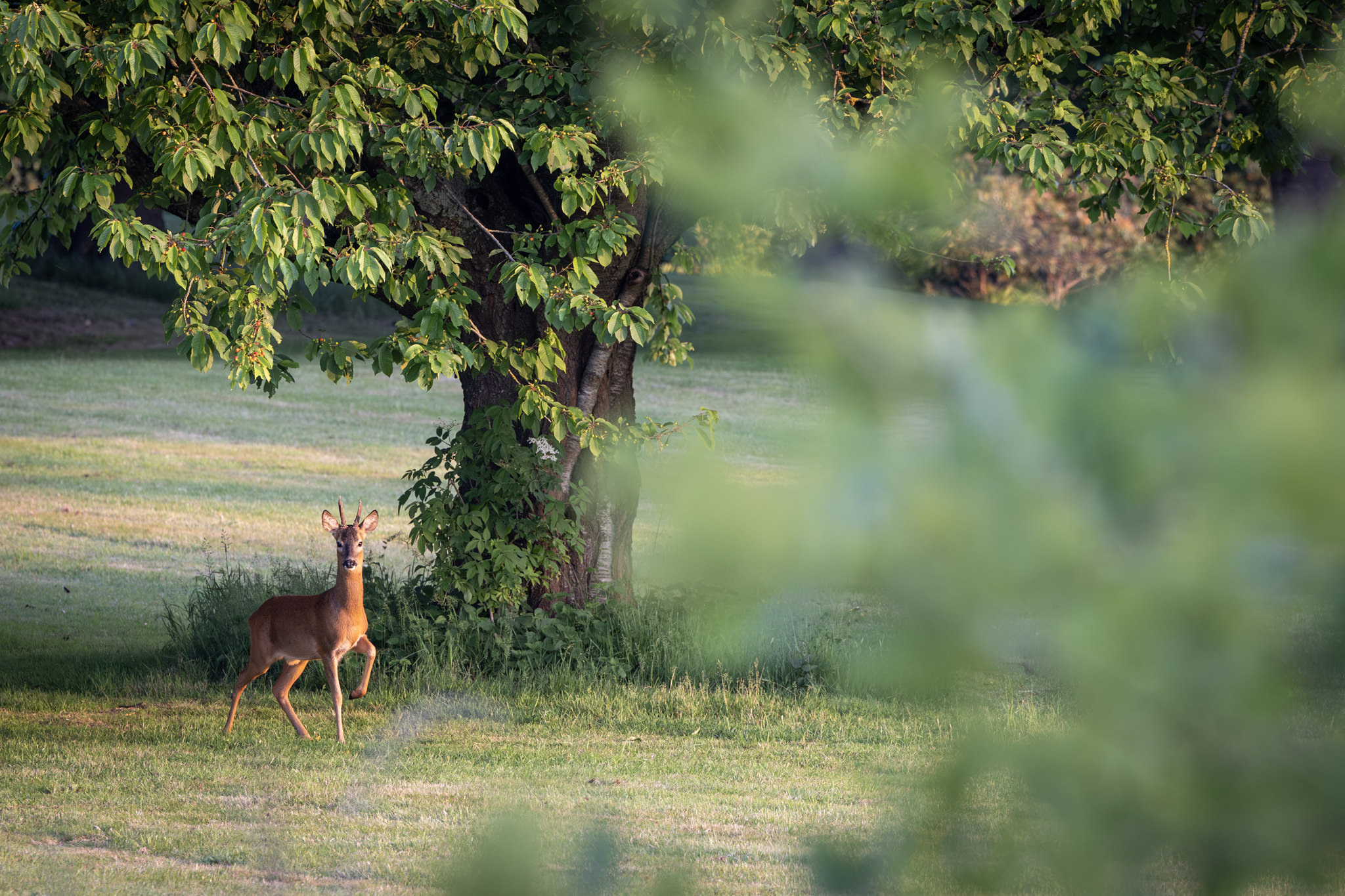 Weather-wise, the last two weeks in Platt have been a mixed bag, with glorious summer days broken by short, cooler periods of much-needed rain. At the start of the month, I visited Platt School to photograph the Year Six Leavers for the Village News, and for the first time in over two years, I’d been inside the building, where I prolifically documented its construction in 2021. I have managed to get out and about several times at different hours of the day and in all weather. The ‘Platt Cats’ have been out in force, swifts circling the church tower before sunrise, a fox knawing its quarry on Windmill Hill, and a roe deer at dawn tentatively picking its way around the outskirts of a barley field and into a back garden – every step coinciding with the click of my shutter. At Great Comp, seasonal hues of every description (and more) are abundant, shaded enclaves contrasting with a panoply of colours in more sunlit areas. The evenings have been warm and humid, especially before the overnight storm which swept across the parish last Friday night; evening song from blackbirds, chaffinches, tits, chiffchaffs, larks and greenfinches soundtracking approaching heavy skies in the east.