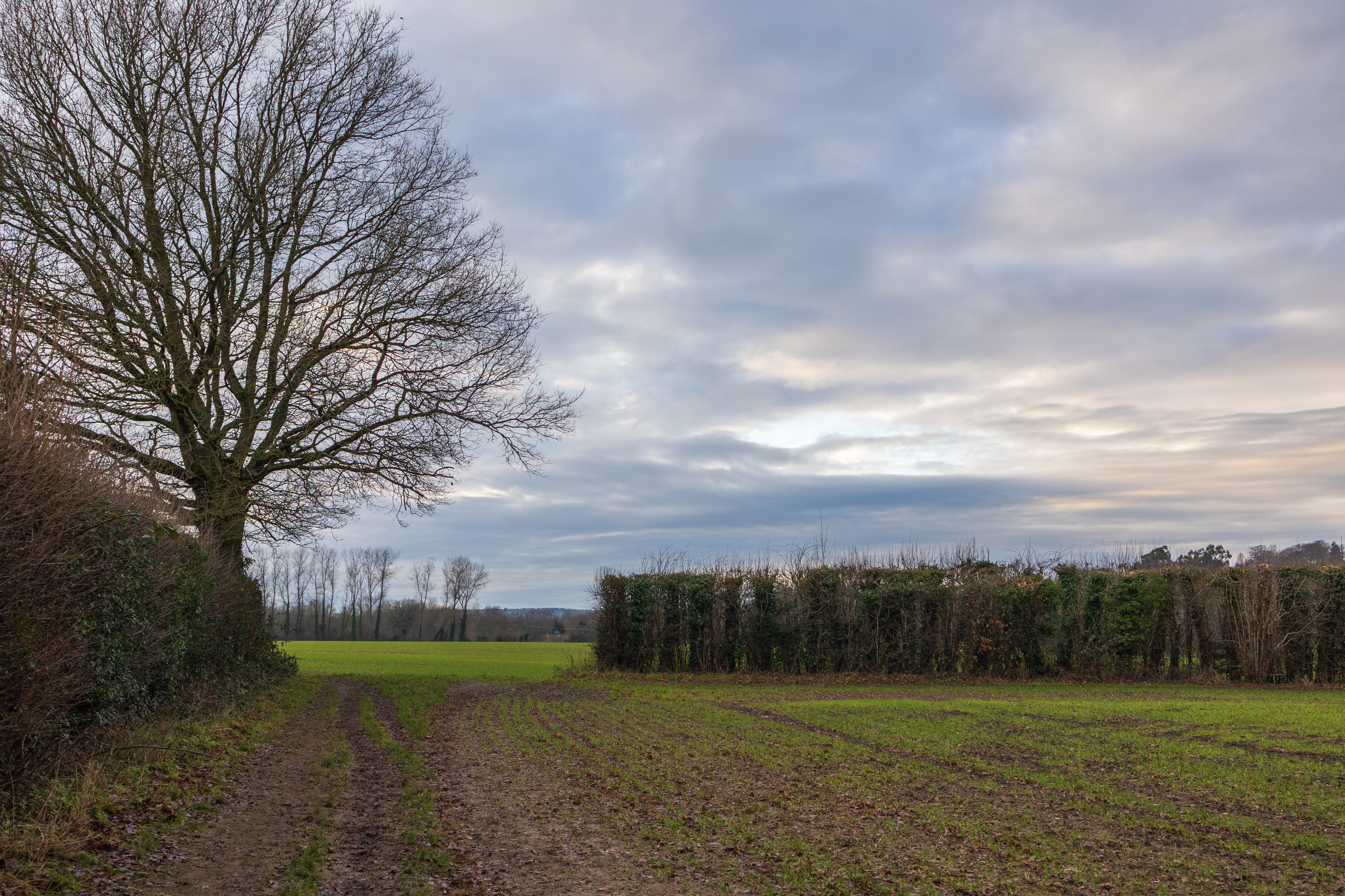 We are now just over halfway through January, and with tomorrow unofficially designated as ‘Blue Monday’, I usually start casting my gaze a little closer than usual, in the hunt for the first signs of new life. This year, with the very mild weather, I didn’t have to look far, and even first thing this morning, as I opened my front door, I was greeted by two daffodils in bloom. After last week’s deluges, spells of sunshine this weekend have been welcome, and although I was photographing the floods over in Tonbridge during the best of it, I was pleased to be running with friends this morning, with the warmth on my face. This afternoon, when I managed to get out for a walk, the clouds had crept back, and all was still.