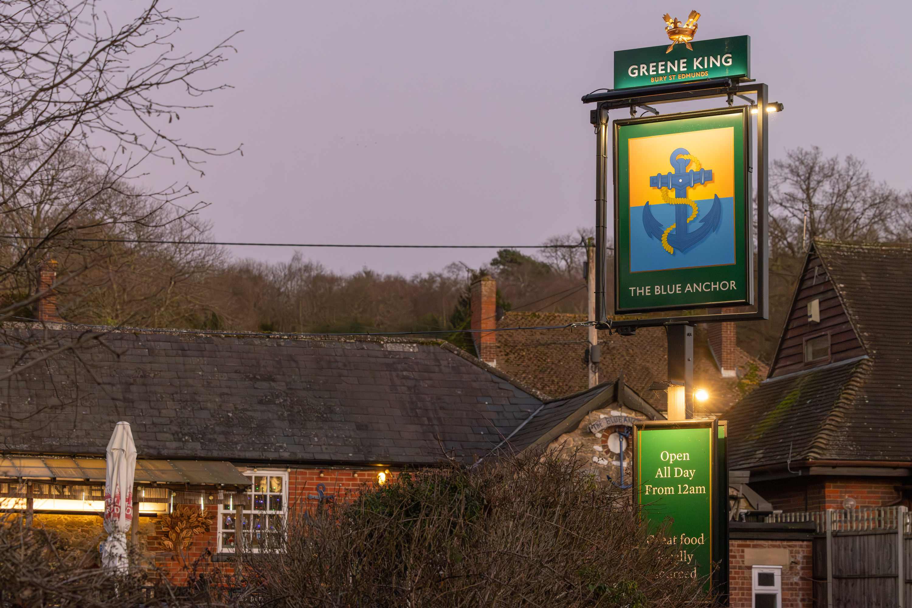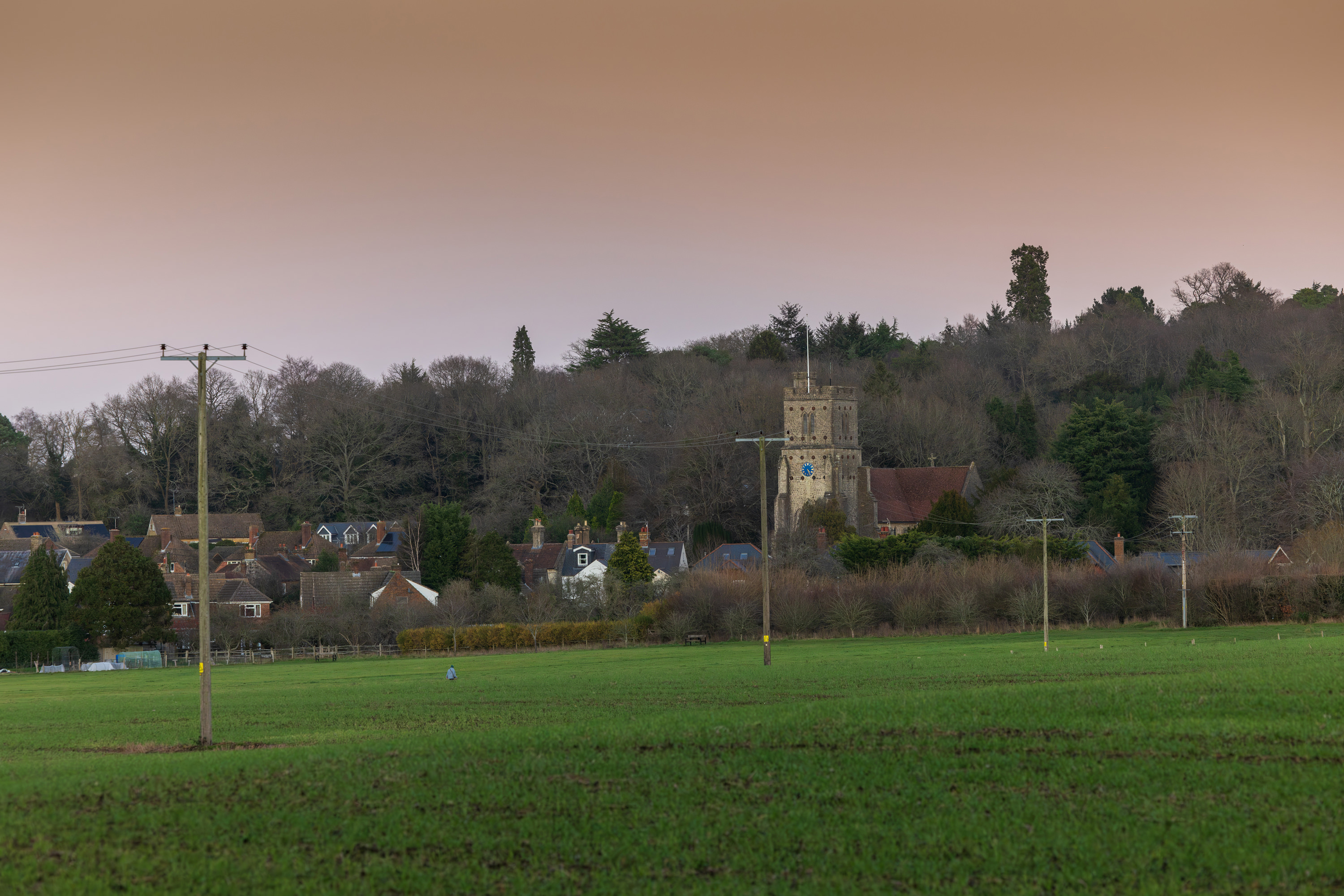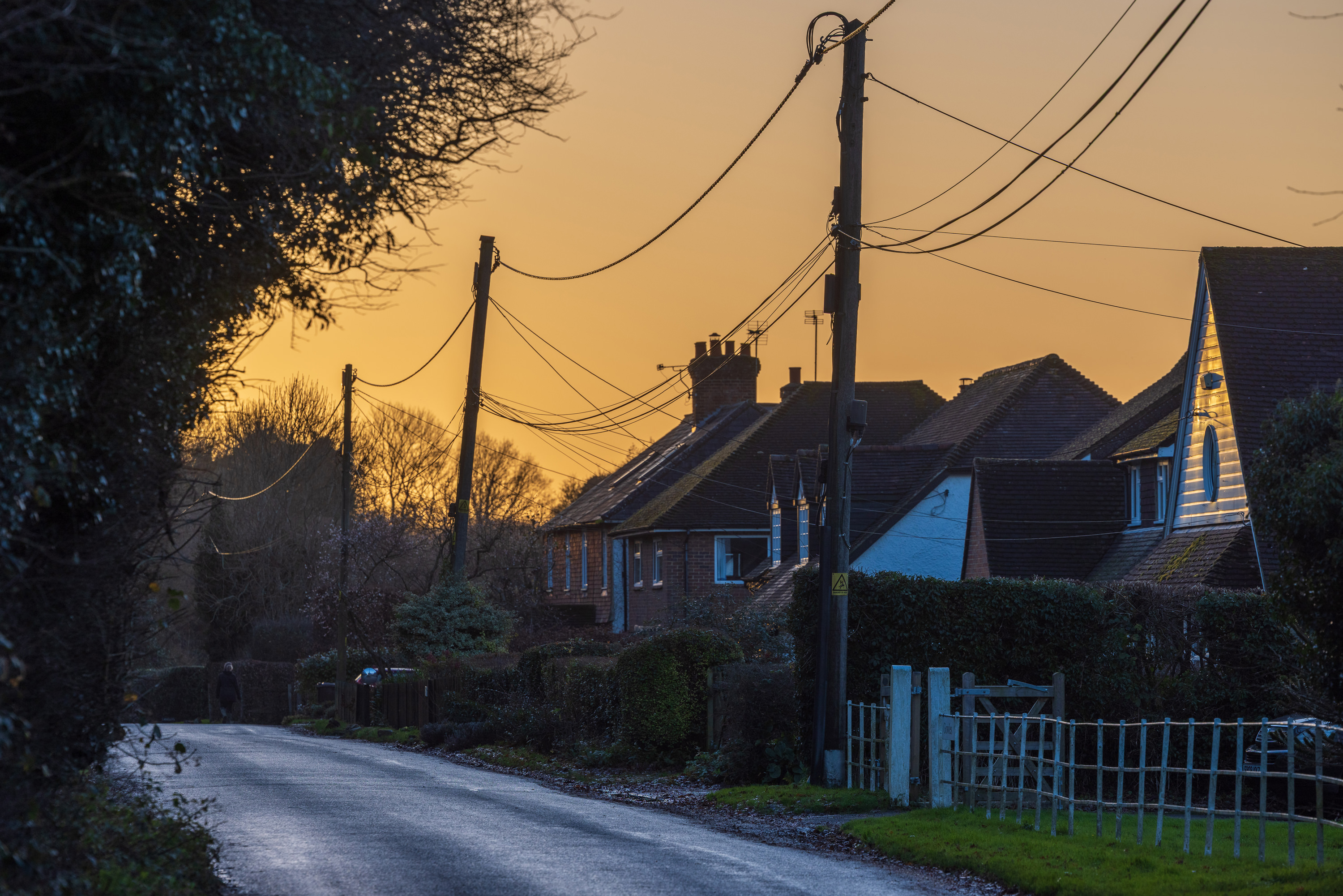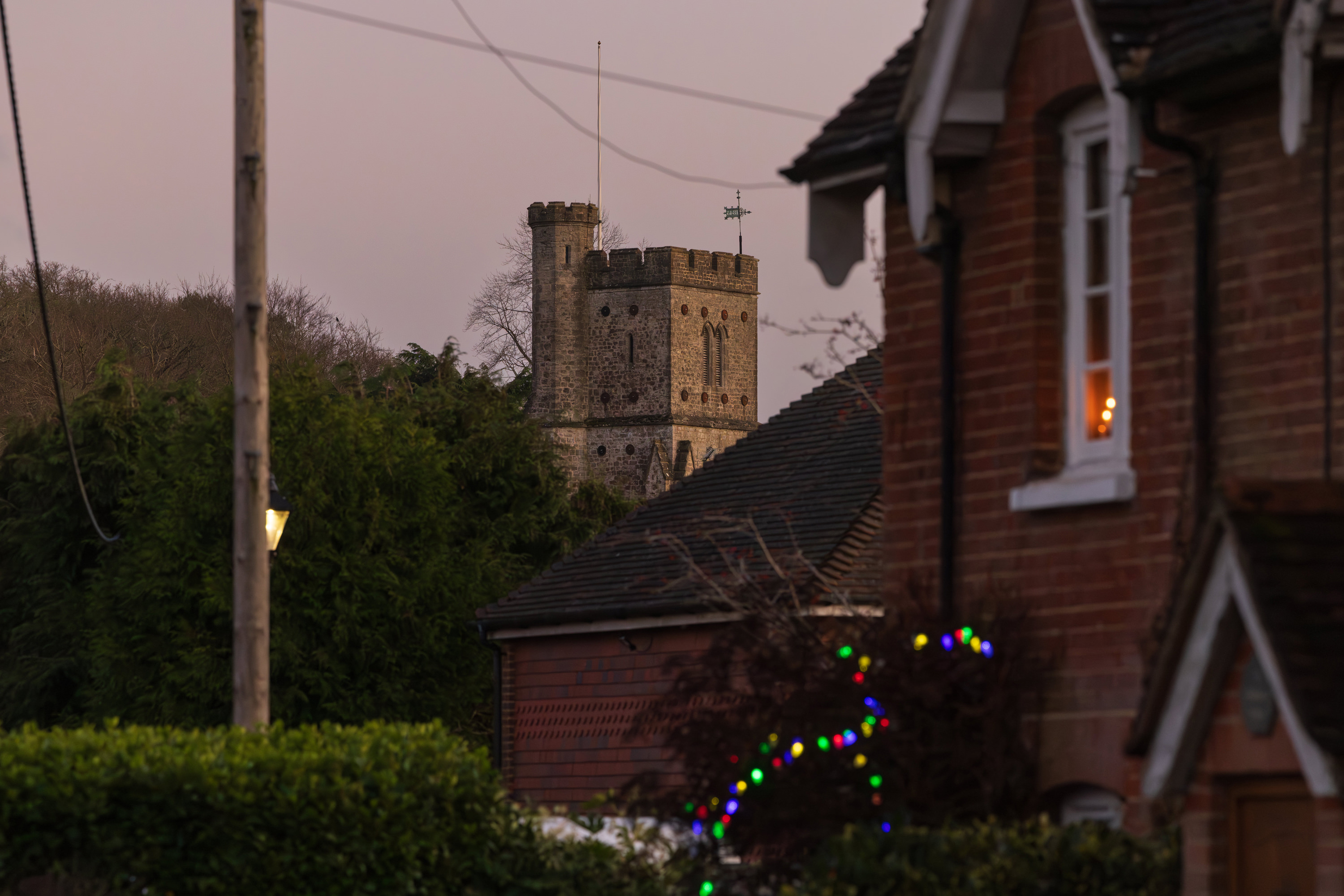 At sundown, Beechin Wood again turned golden, the treeline watching over the fields near Crouch, rustic brown. A buzzard, flying high over Stonehouse, encircled by crows, while below, a solitary song thrush soundtracks the remains of the day. Tiny yellow lights strung around Sotts Hole Cottage, a giant inflatable Santa on Long Mill Lane, a small festive tribute left for young Violet Lovell, who died in 1911. Platt Woods, where, over a hundred years ago, a girl and her dog played with fairies, stoic, dark, and strangely comforting.